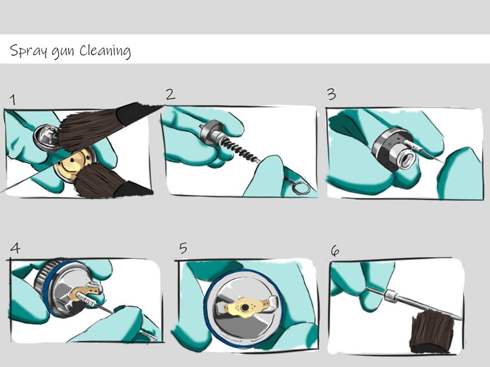 A SATA kézikönyvében az ehhez szükséges legalapvetőbb lépések is benne vannak. Mert még a legapróbb, mikró méretű sérülés is a rossz minőségű festék szóráshoz és így vele együtt rossz minőségű munkát eredményezhet. Az Industrieplan és a SATA azt javasolja, hogy tisztításhoz a SATA tisztító szettjét használja. (64030-as számú termék).