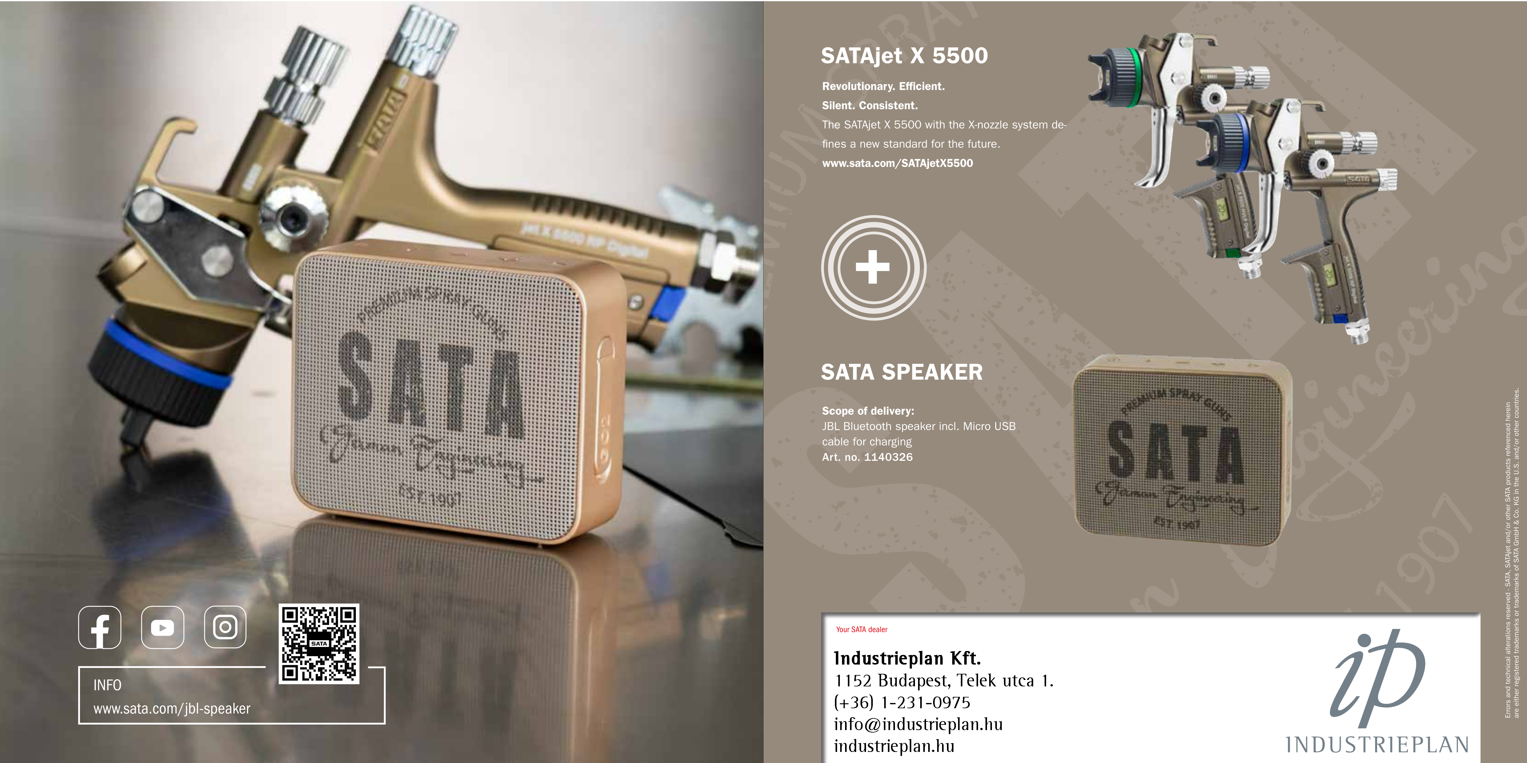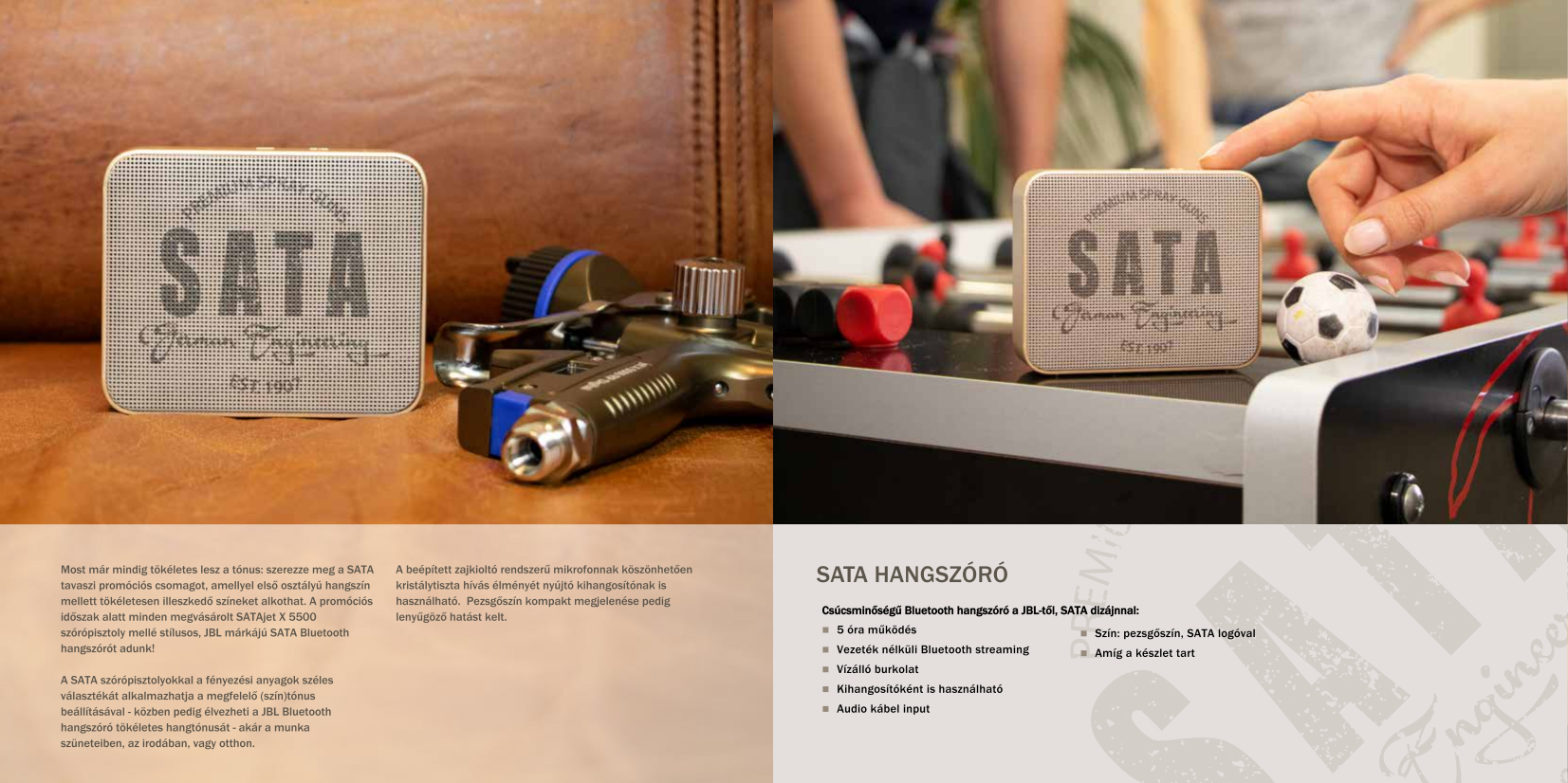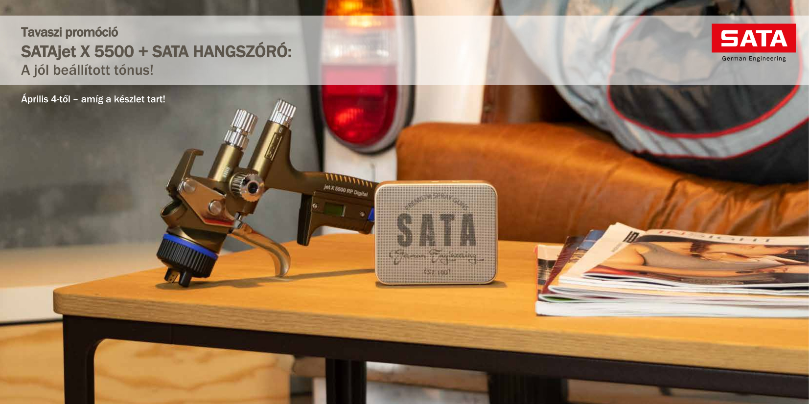 Most már mindig tökéletes lesz a tónus: szerezze meg a SATA SATA HANGSZÓRÓ tavaszi promóciós csomagot, amellyel első osztályú hangszín mellett tökéletesen illeszkedő színeket alkothat. A promóciós időszak alatt minden megvásárolt SATAjet X 5500 szórópisztoly mellé stílusos, JBL márkájú SATA Bluetooth hangszórót adunk!